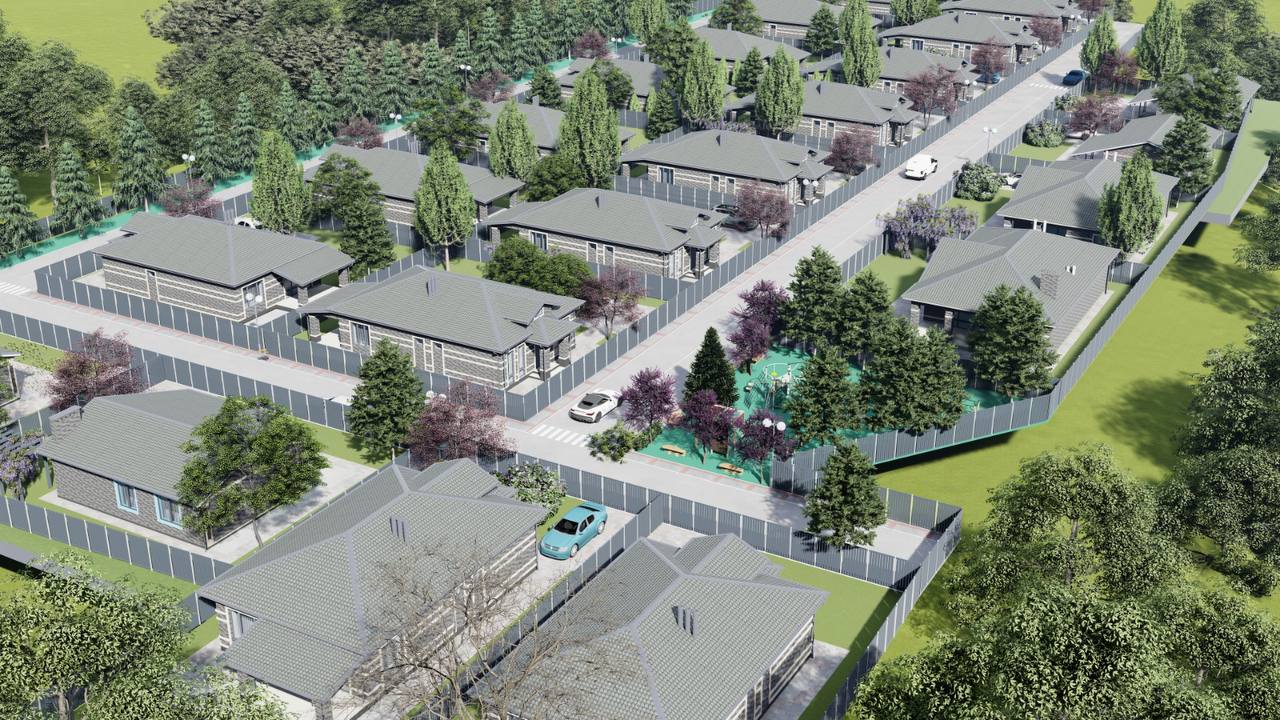 На благоустроенной территории площадью 2 га разместятся 30 коттеджей площадью от 103 м² до 240 м². Каждый дом располагается на собственном земельном участке 500 м² (5 соток).