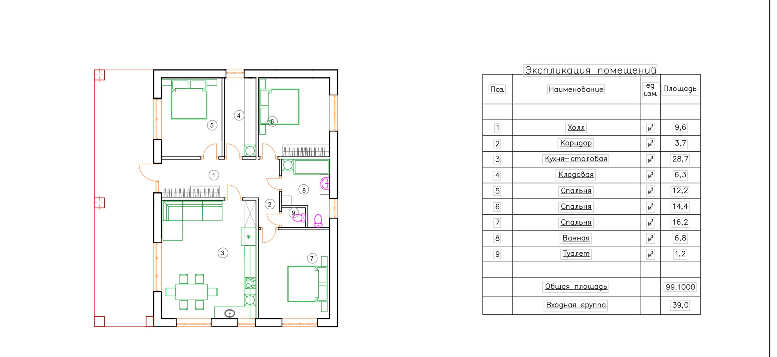 3 спальни